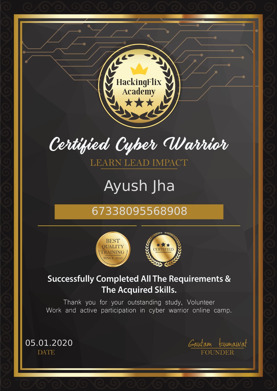 Certified CYBER WARRIOR badge
